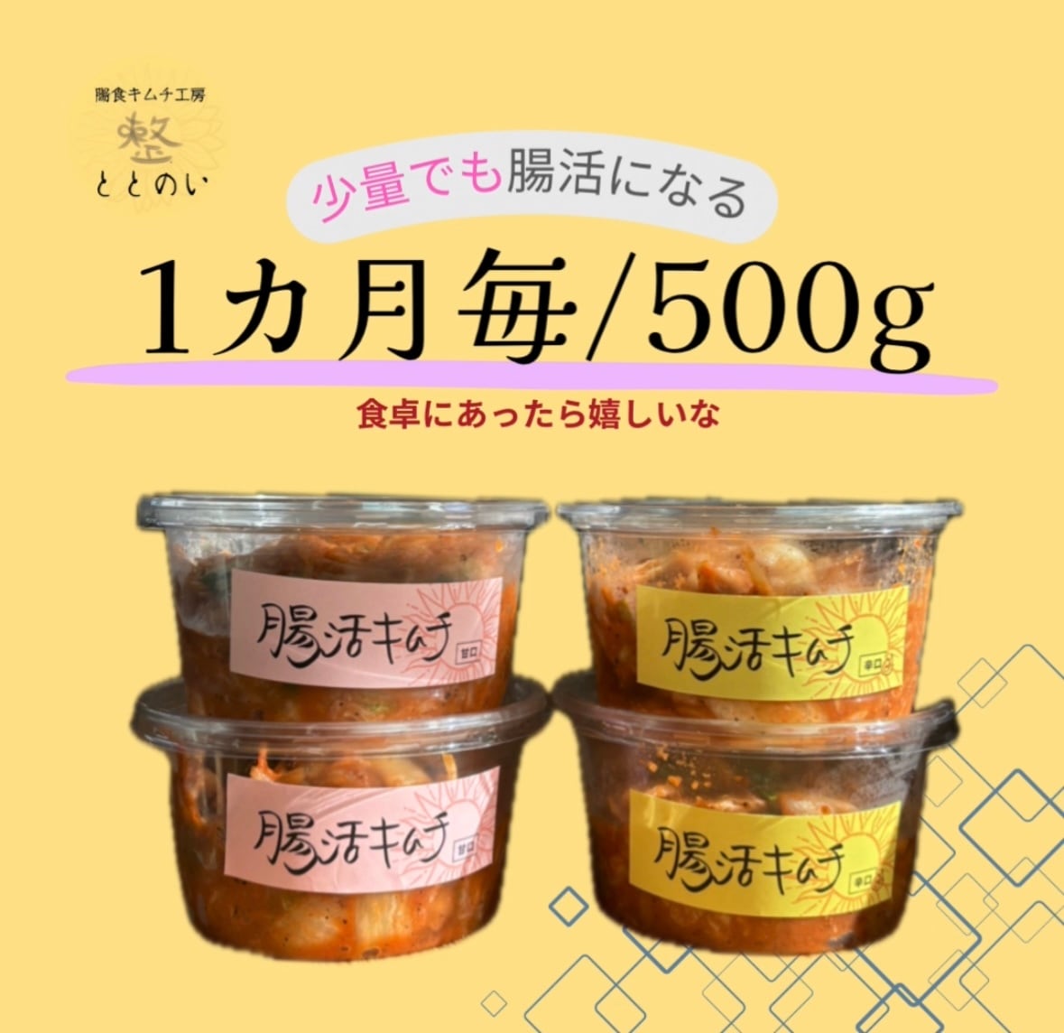 こちらのプランは1か月に1度、腸活キムチ500gが届く定期便です。