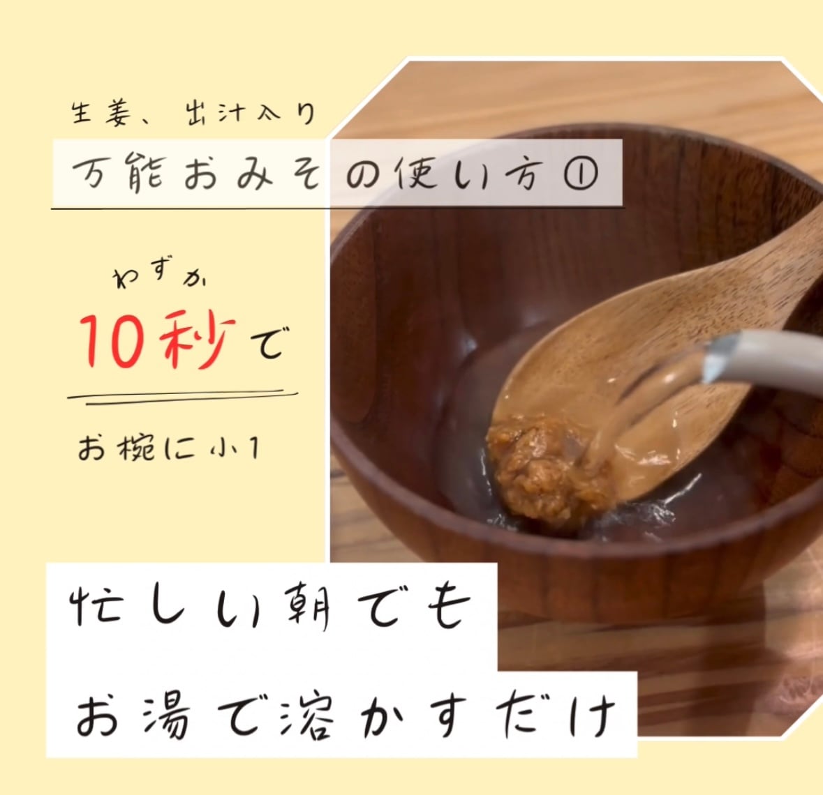 お湯で溶かすだけで簡単に腸活お味噌汁が飲める"万能おみそ"販売開始いたします。